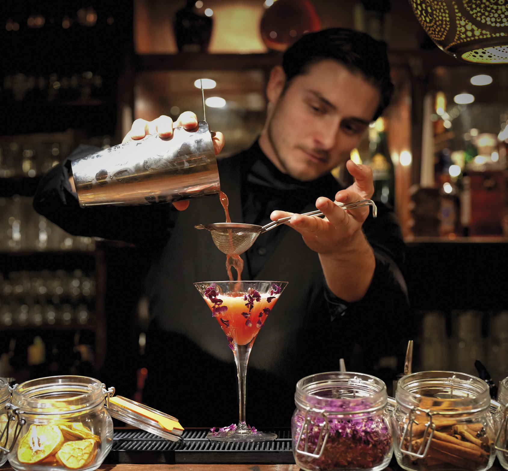 Au Kasbah, le nouveau restaurant de Maison Tournier, le barman Antoine Colombies dévoile des cocktails exclusifs. Pensée en harmonie avec l’esprit oriental et méditerranéen du lieu, cette collection met en avant un art de la mixologie qui s’appuie notamment sur une démarche de valorisation des ingrédients. Les zestes des citrons utilisés pour la cuisine ou la décoration sont ainsi récupérés pour élaborer un sirop complété avec un peu de yuzu. Cette préparation est intégrée au »Kintsugi », qui allie par ailleurs la douceur et la finesse du saké Yukiguma, très floral et fruité, à une pointe de grenadine ; l’ensemble s’harmonisant avec la puissance du gingembre et l’amertume sophistiquée du bitter Fusetti. À la fois ronde et acidulée, cette composition idéale en before dinner, accompagne aussi avec finesse les mets de la carte, notamment le carpaccio de calamar ou les poissons, qu’elle sublime avec légèreté et fraîcheur.